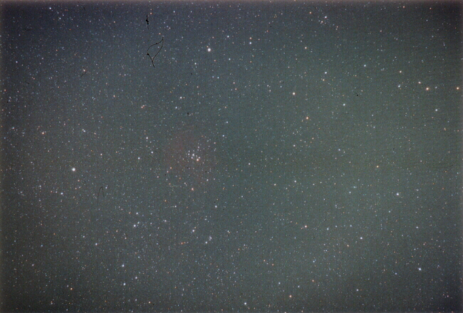 Dieses Photo zeigt das Sternbild Monoceros. Man kann den Rosettennebel+ NGC 2244 leider nur ganz schwach erkennen, da der Diafilm FujiChrome Provia 400F nicht so Rotempfindlich ist. Die