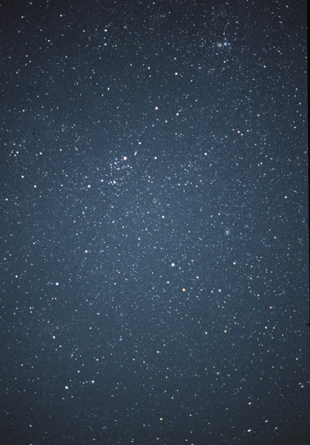 aufgenommen. Das Bild zeigt das Sternbild “Perseus”. Ich habe das Bild 1 min bei Blende 1,7 mit 50mm Brennweite belichtet. Ich benutzte den Diafilm FujiChrome 1600.