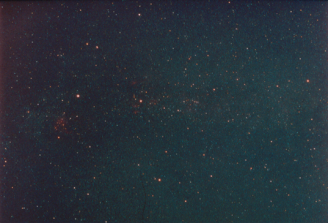 Sommersternbild durch das die “Milchstraße” verläuft. Der helle Stern links ist Deneb, unter Ihm liegt der “Nordamerikanebel”.